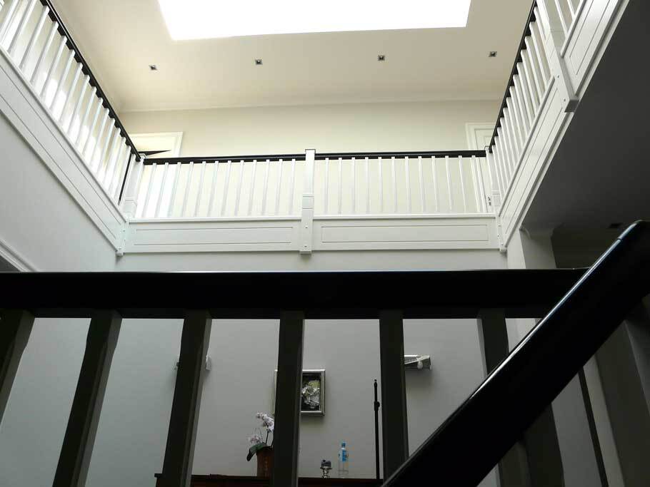 Dieser Auftrag wurde von uns ausgeführt, weil wir vom beauftragten Tischler des Gesamtauftrags als Spezialist für Treppenbau hinzugezogen wurden. Logistische Herausforderung beim Einbau war die große Raumhöhe. Daher sind auch 19 Steigungen notwendig, um bequem von einem Stockwerk ins andere zu gelangen.